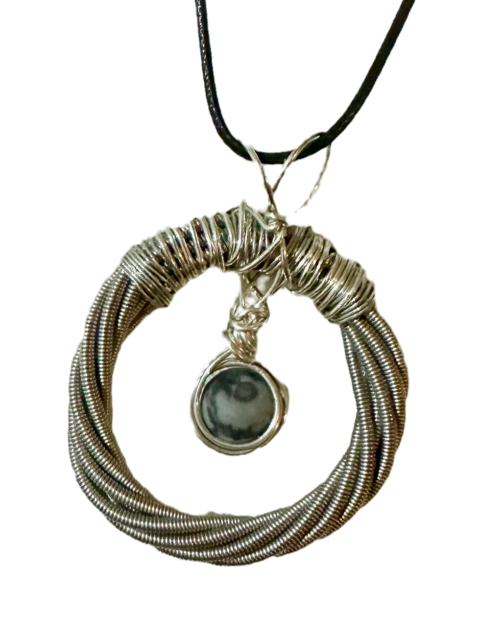 Guitar string necklace with center stone